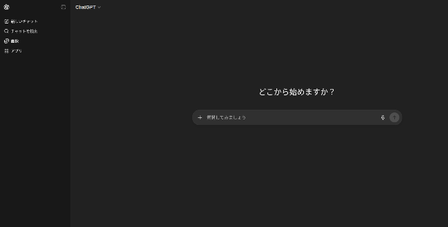すべての手続きが完了すると、ChatGPTのメイン画面が表示されます。画面下部に「Message」と書かれたテキスト入力欄があり、ここに質問や指示を入力することでAIとの対話を開始できます。マイクアイコンをクリックすれば音声入力も可能です。初めて利用する際は、簡単な質問から始めて、ChatGPTの動作を確認してみることをおすすめします。