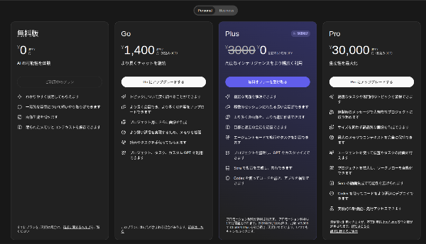 ChatGPTは無料プランから最上位のProプランまで、用途や予算に応じて選べる4つの料金体系を提供しています。2026年1月16日に新たに追加された「ChatGPT Go」プランは、無料版とPlusプランの中間に位置する手頃な価格帯のオプションとして注目を集めています。